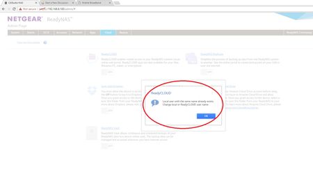 Hi all, I am having an issue when logging into ReadyCloud so as to enable the service for remote access. When I input the (correct) email and password I get the error below, I tried restting my password (if it makes any difference) but the issue persisted; I made sure that none of the users created clashed with regards to name or email address used and they dont and yet I cannot seem to get it working(image below). Device: ReadyNAS 104 OS: 6.6.1 Enivronment: 3 person office I appreciate your assistance Many thanks in advance Best regardsSolved4.7KViews0likes11CommentsHelp....I can access configuration but not my files :-(